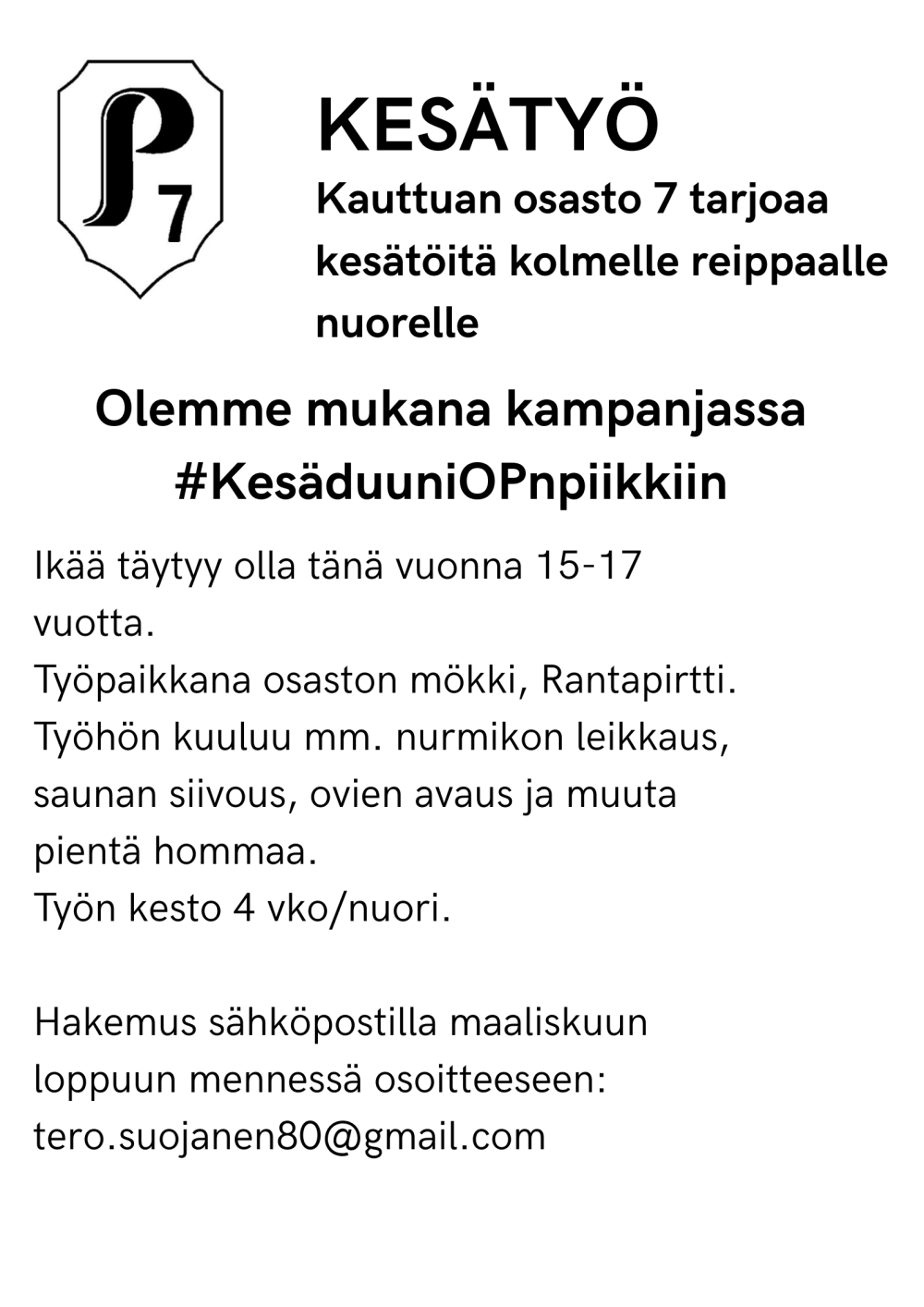 ja lisää Rantapirtin turvallista käyttöä jatkossakin.